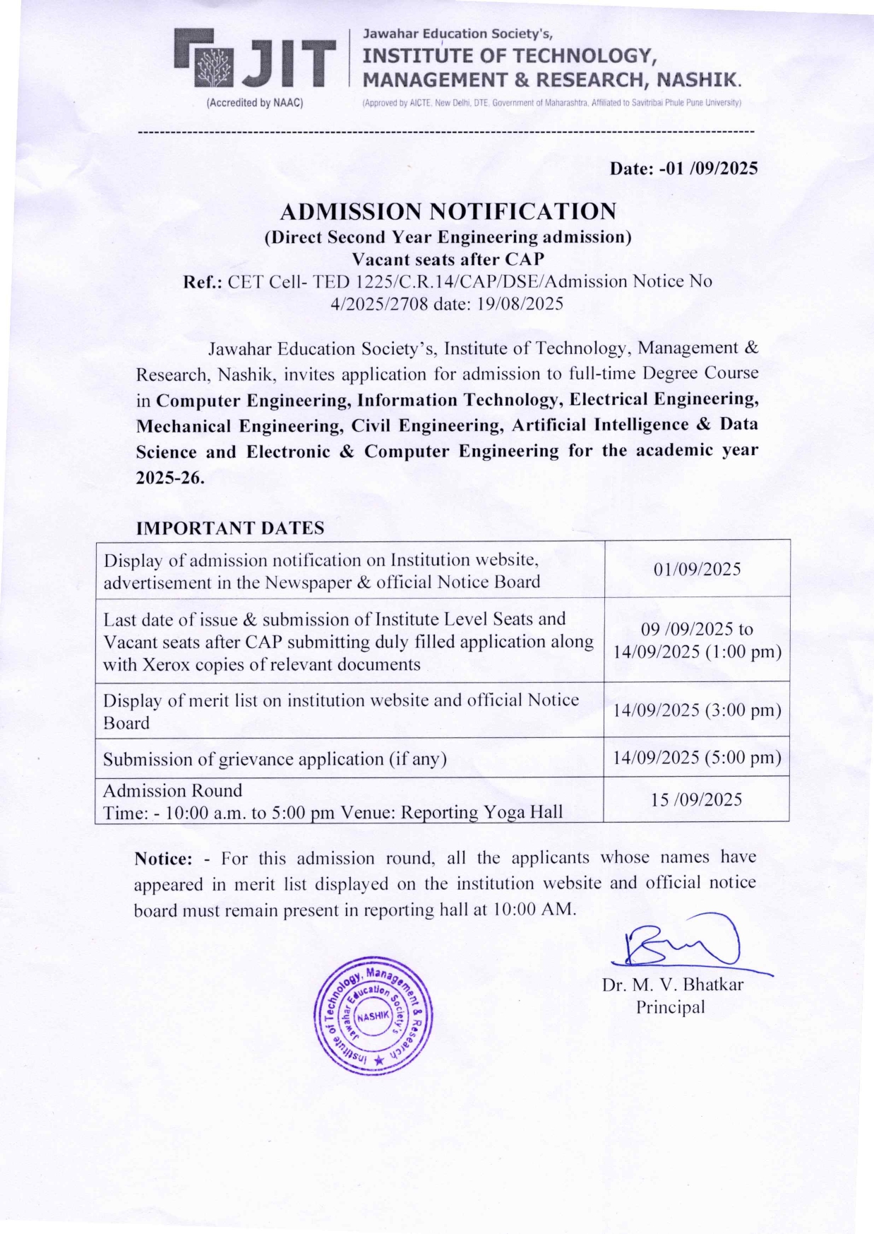 | Sr. No. | Code | Name of Program | Intake | Total Vacant Seats (Laternal Intake) + (Vacant Seats of FE) |
